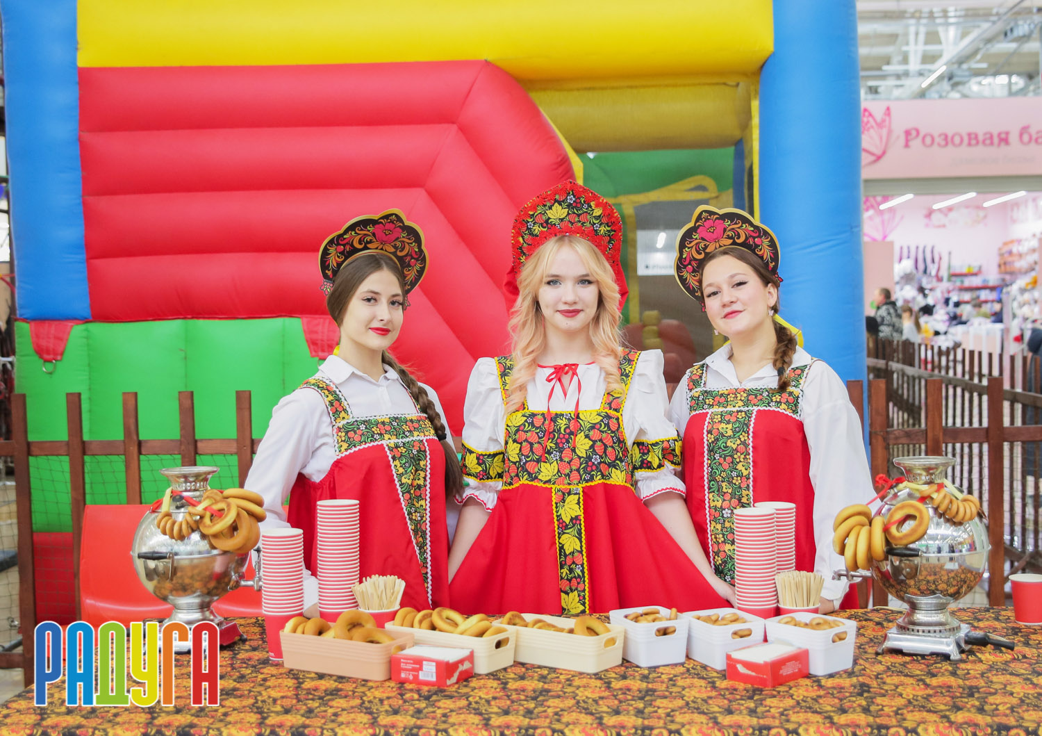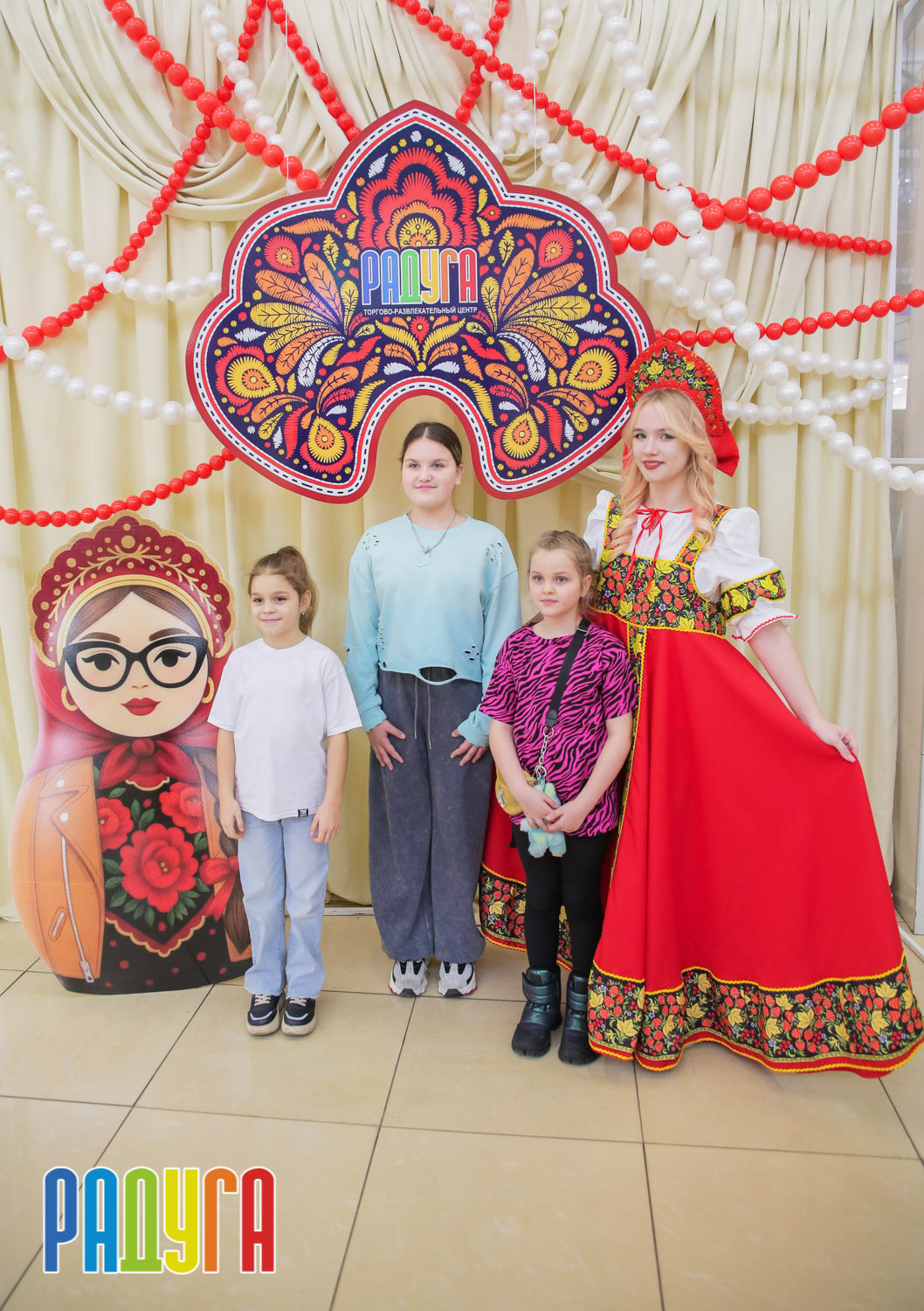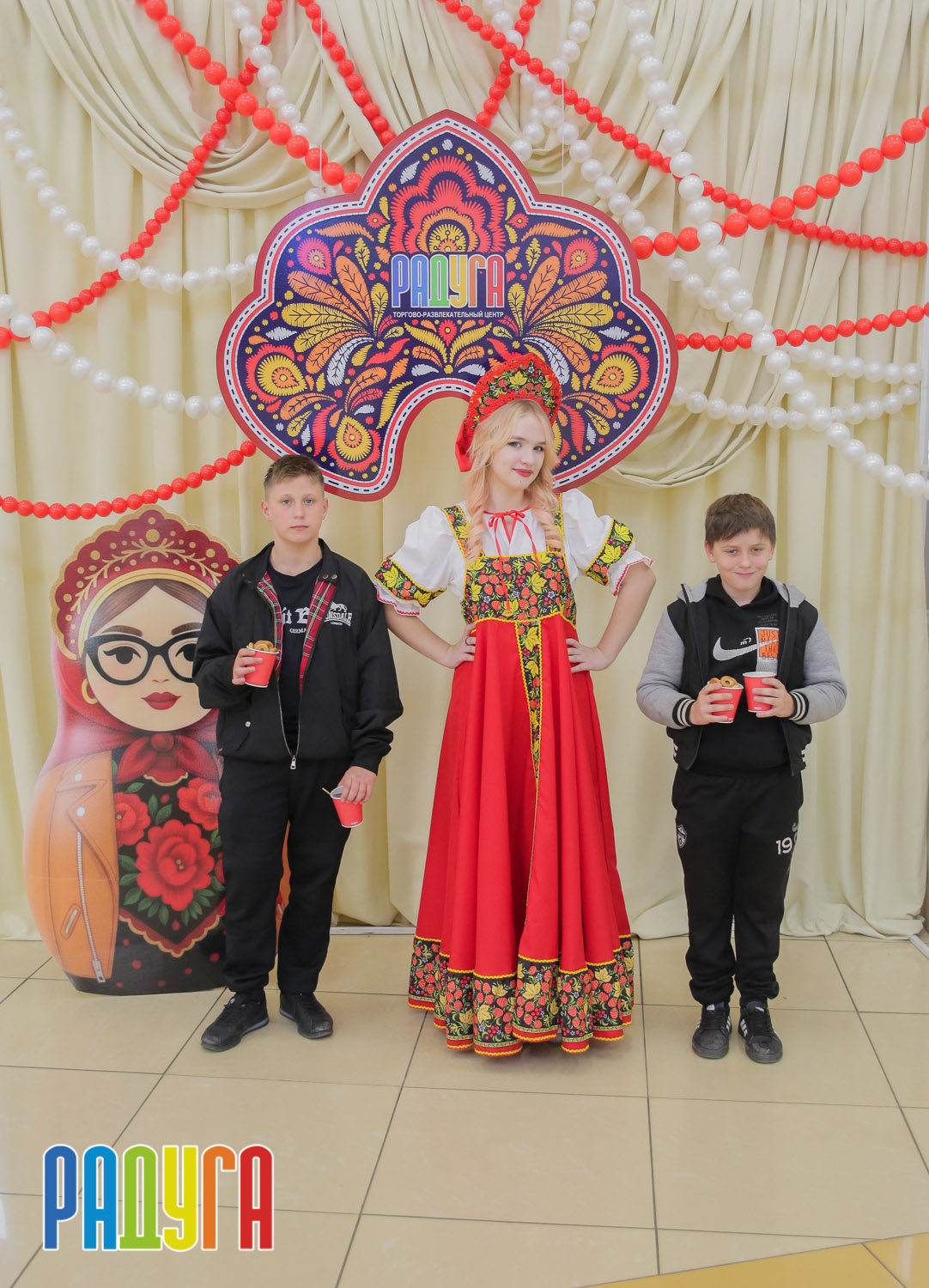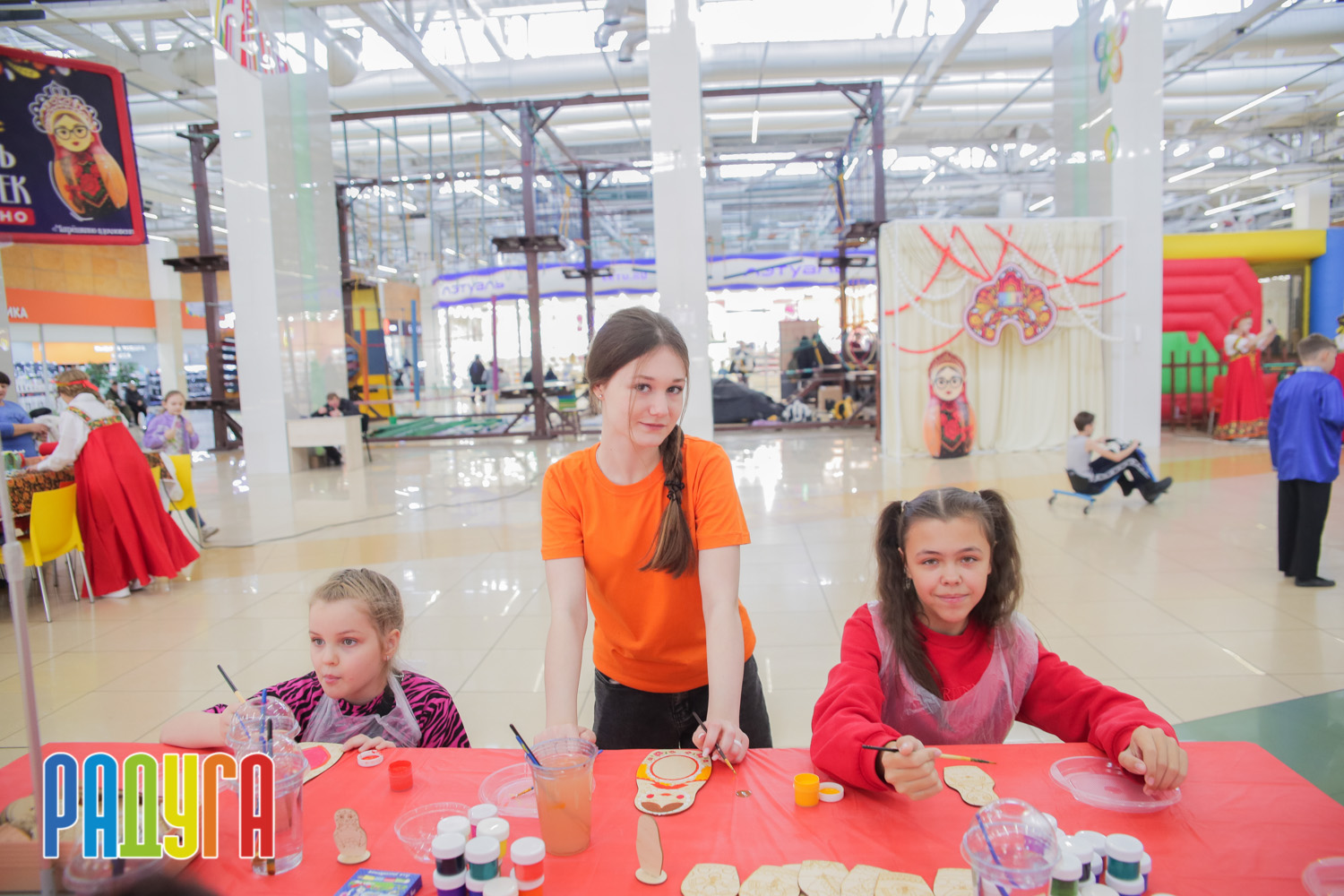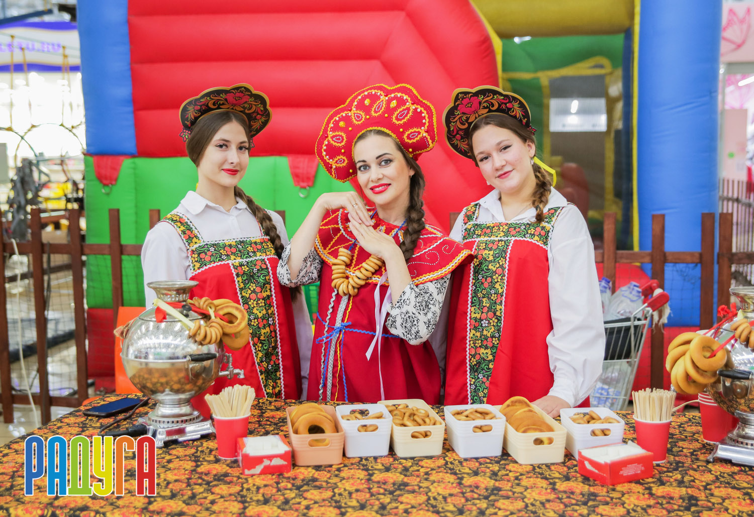 Участники флешмоба «В кокошнике по ТРЦ Радуга» блистали в своих нарядах! В нашей творческой мастерской создавались яркие народные аксессуары и расписывались матрёшки. Гостей радовала живая музыка на балалайке, а самовар с баранками согревал и создавал уютную атмосферу.