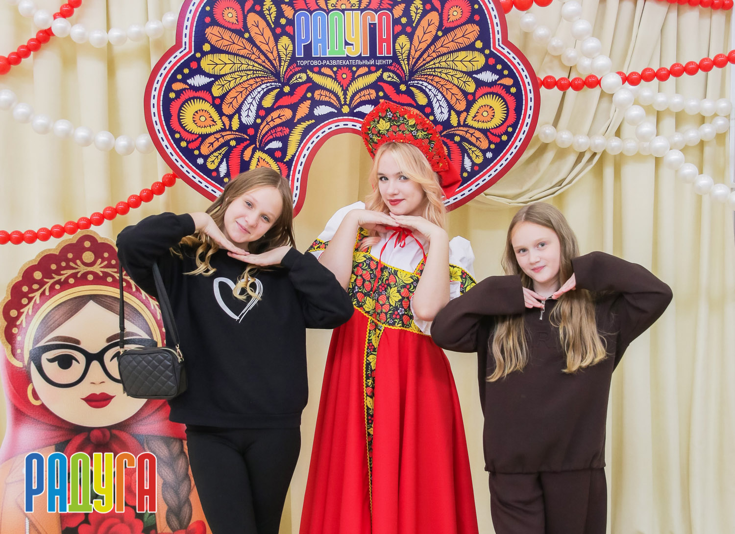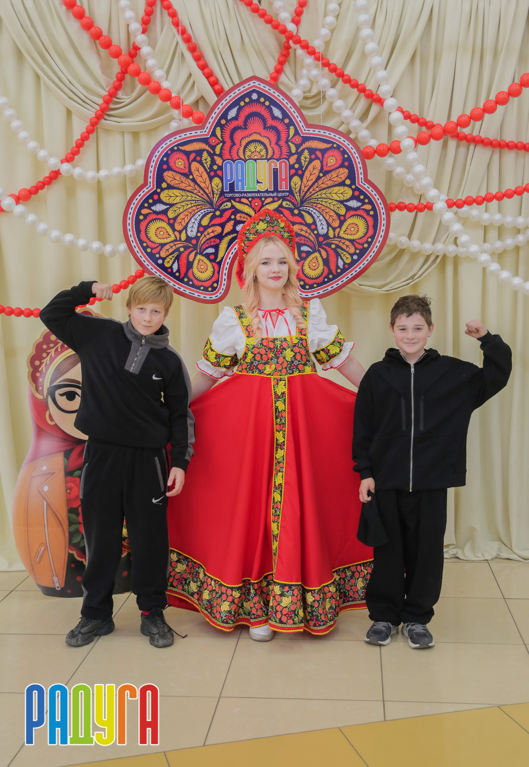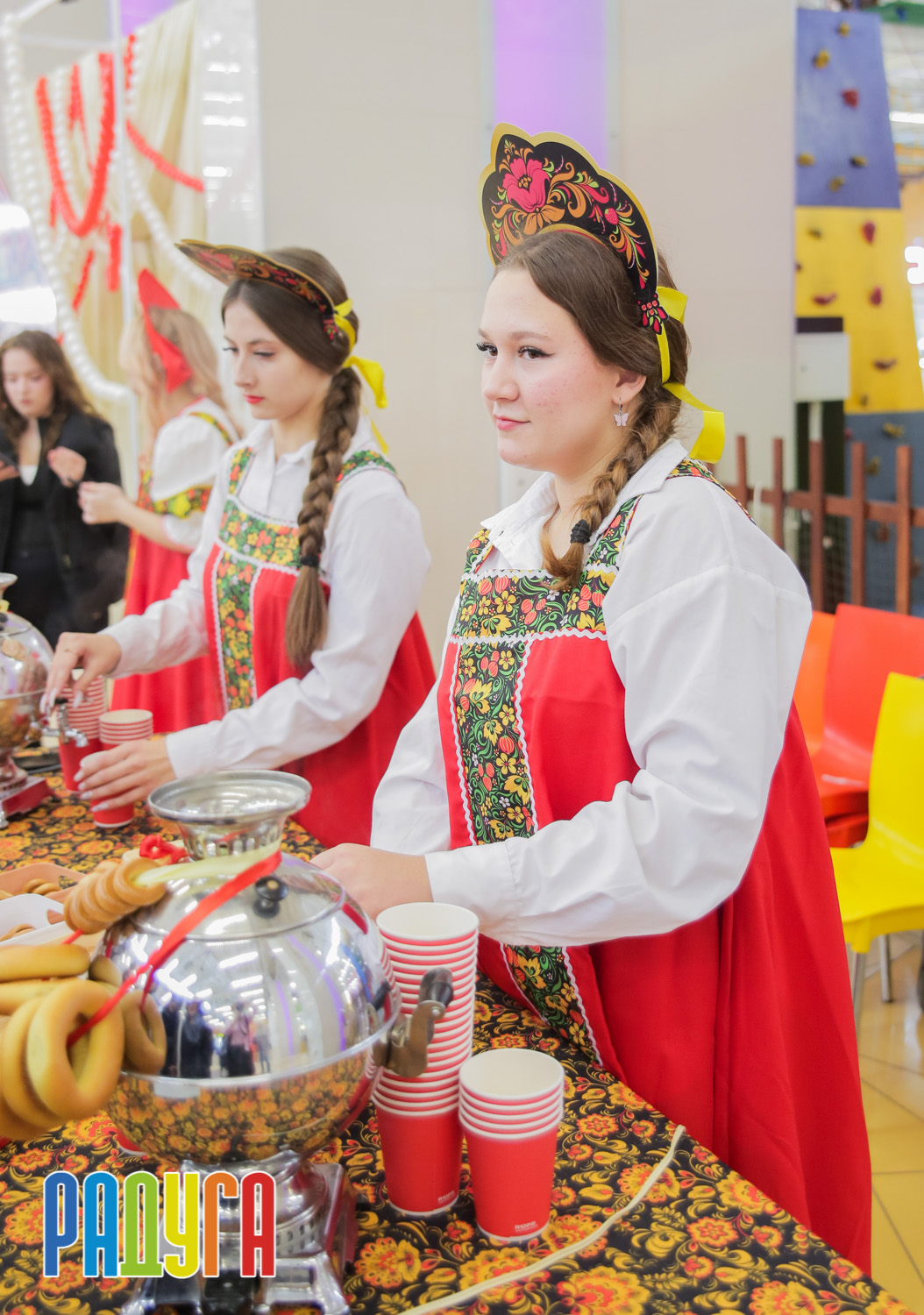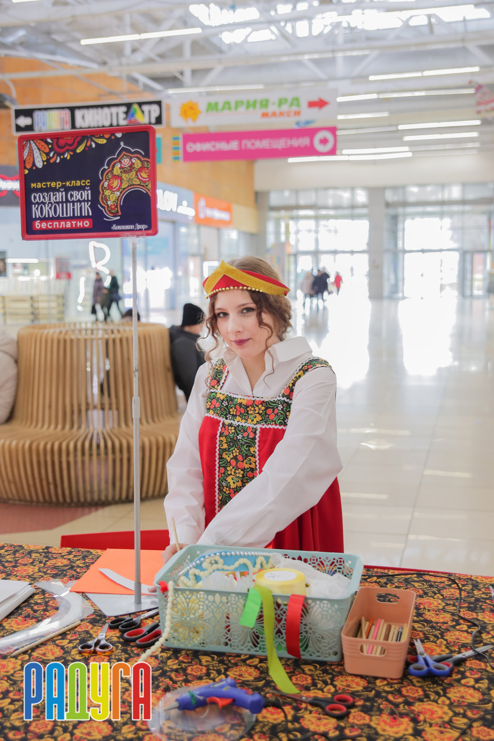 Участники флешмоба «В кокошнике по ТРЦ Радуга» блистали в своих нарядах! В нашей творческой мастерской создавались яркие народные аксессуары и расписывались матрёшки. Гостей радовала живая музыка на балалайке, а самовар с баранками согревал и создавал уютную атмосферу.