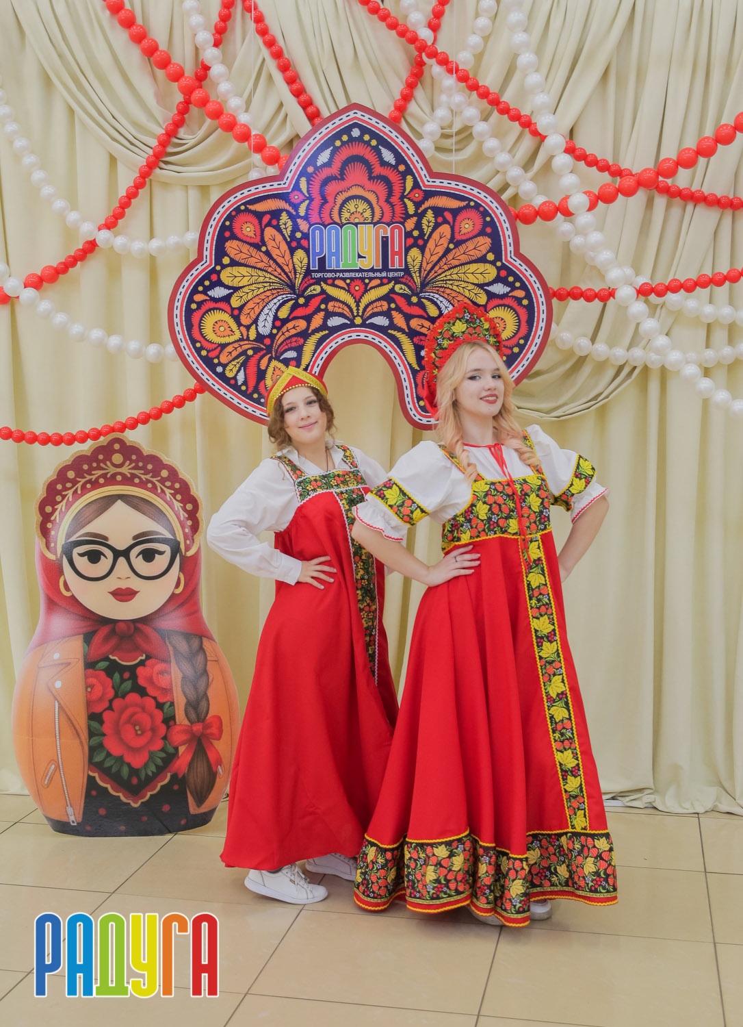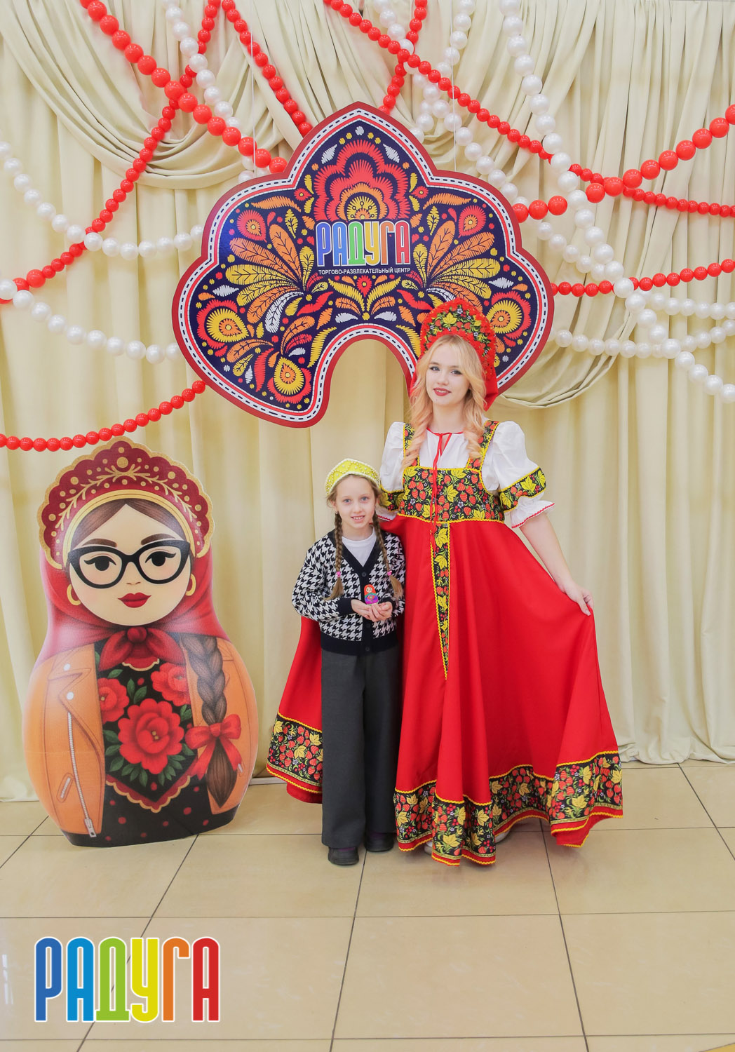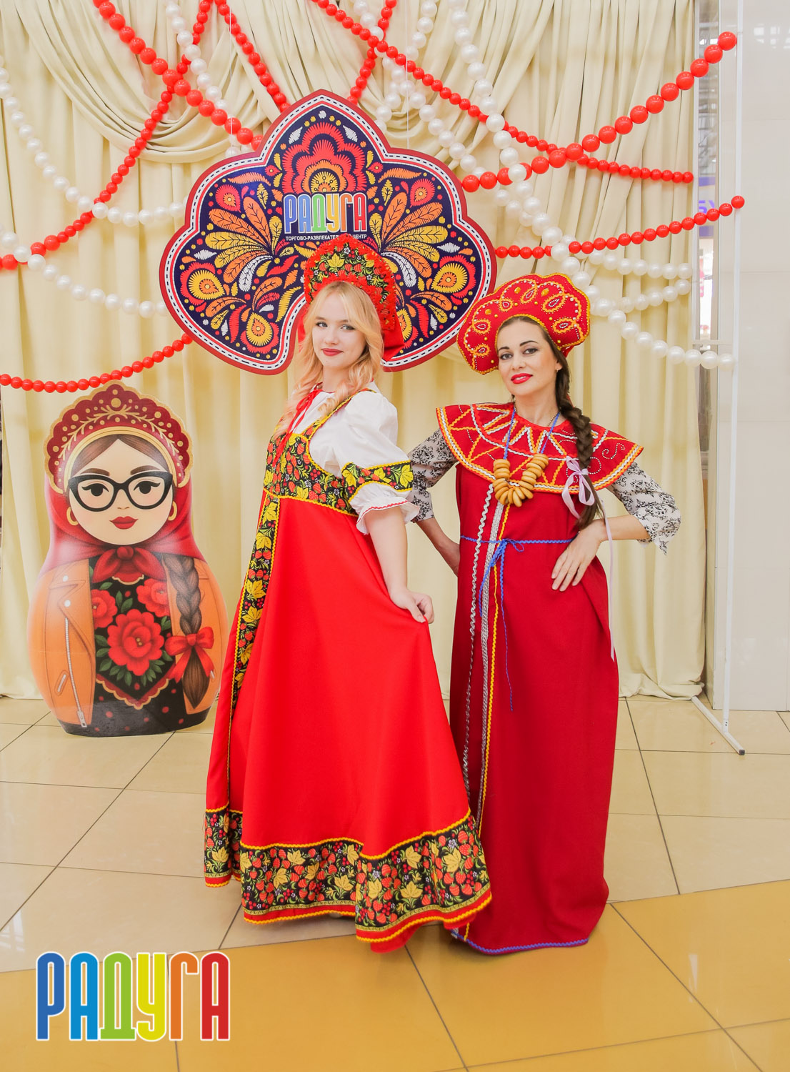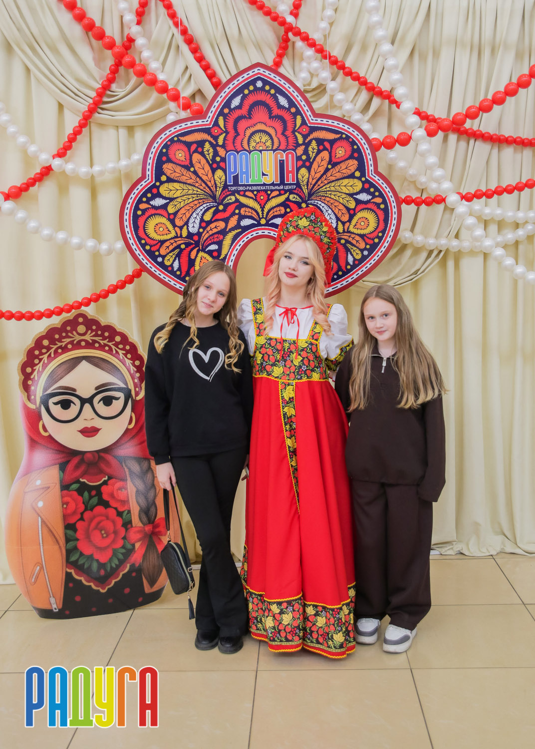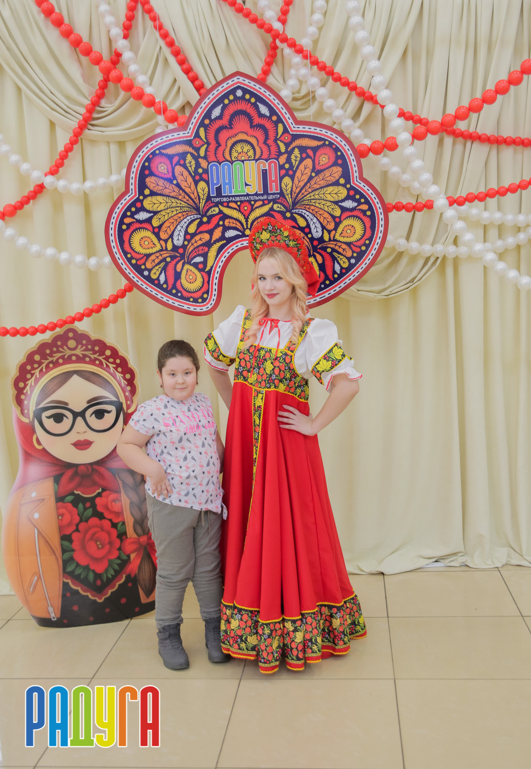 Участники флешмоба «В кокошнике по ТРЦ Радуга» блистали в своих нарядах! В нашей творческой мастерской создавались яркие народные аксессуары и расписывались матрёшки. Гостей радовала живая музыка на балалайке, а самовар с баранками согревал и создавал уютную атмосферу.