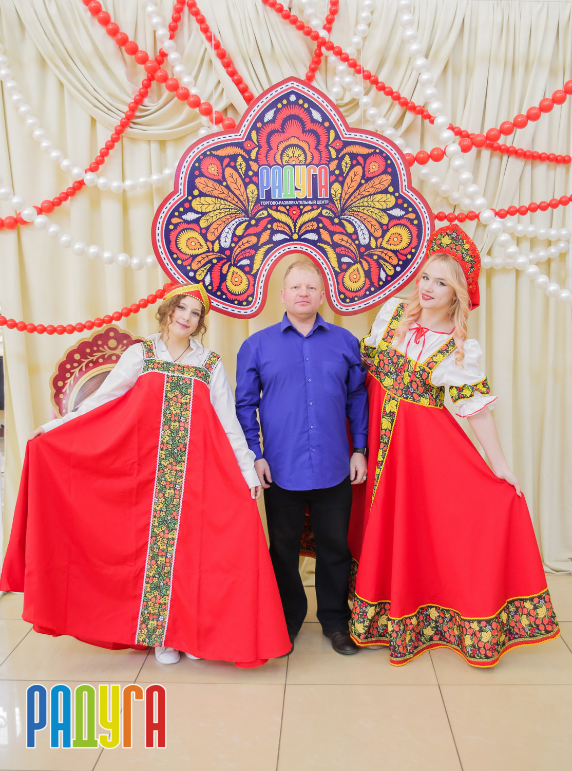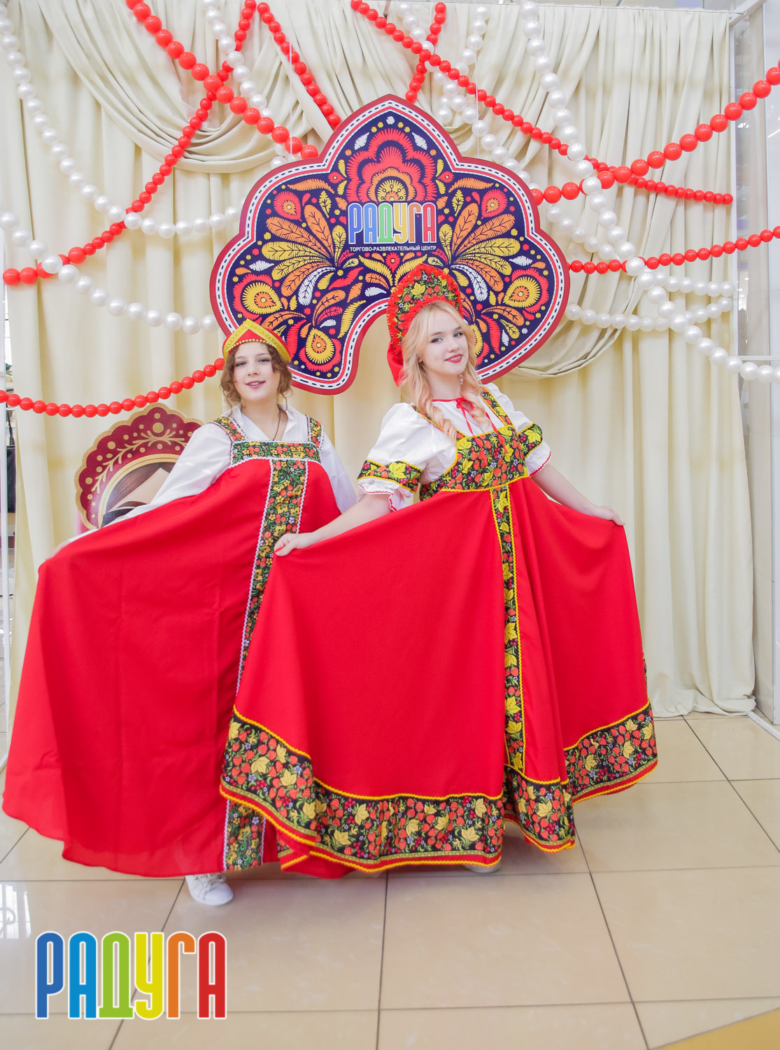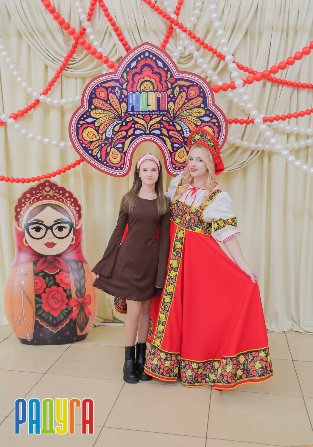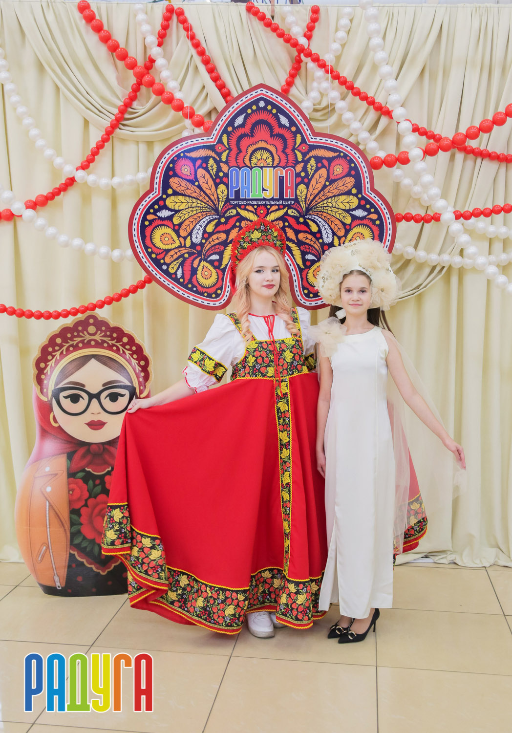 Участники флешмоба «В кокошнике по ТРЦ Радуга» блистали в своих нарядах! В нашей творческой мастерской создавались яркие народные аксессуары и расписывались матрёшки. Гостей радовала живая музыка на балалайке, а самовар с баранками согревал и создавал уютную атмосферу.
