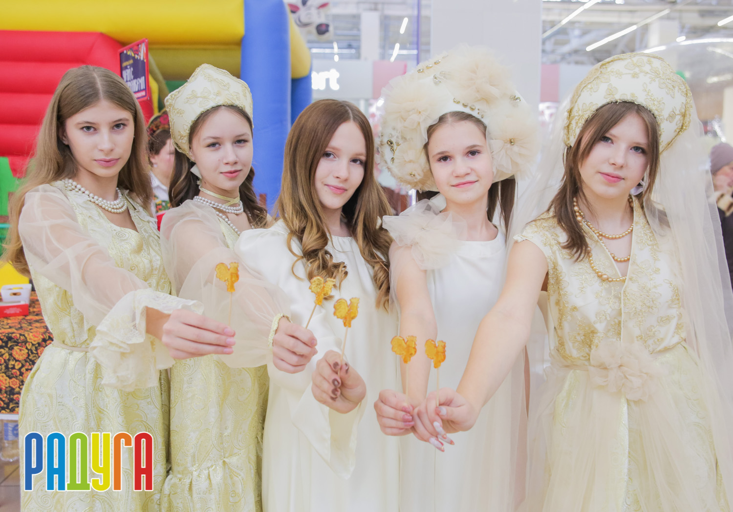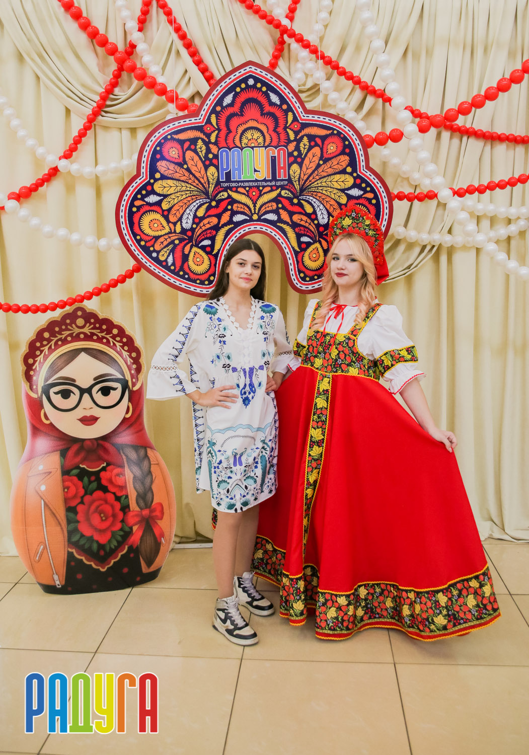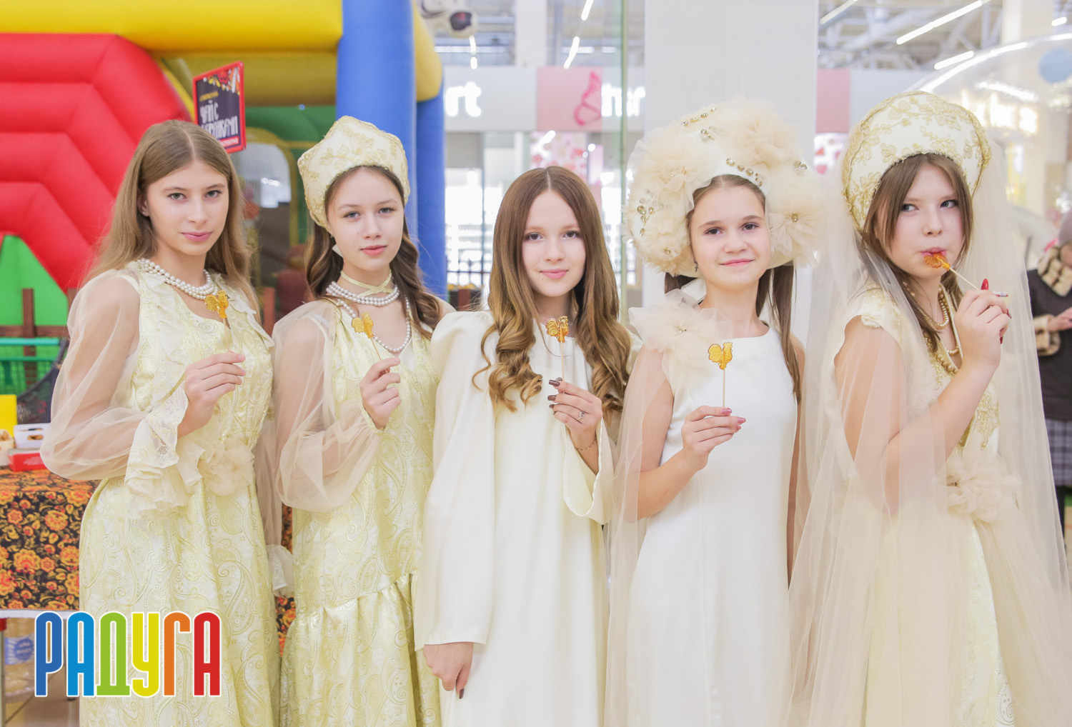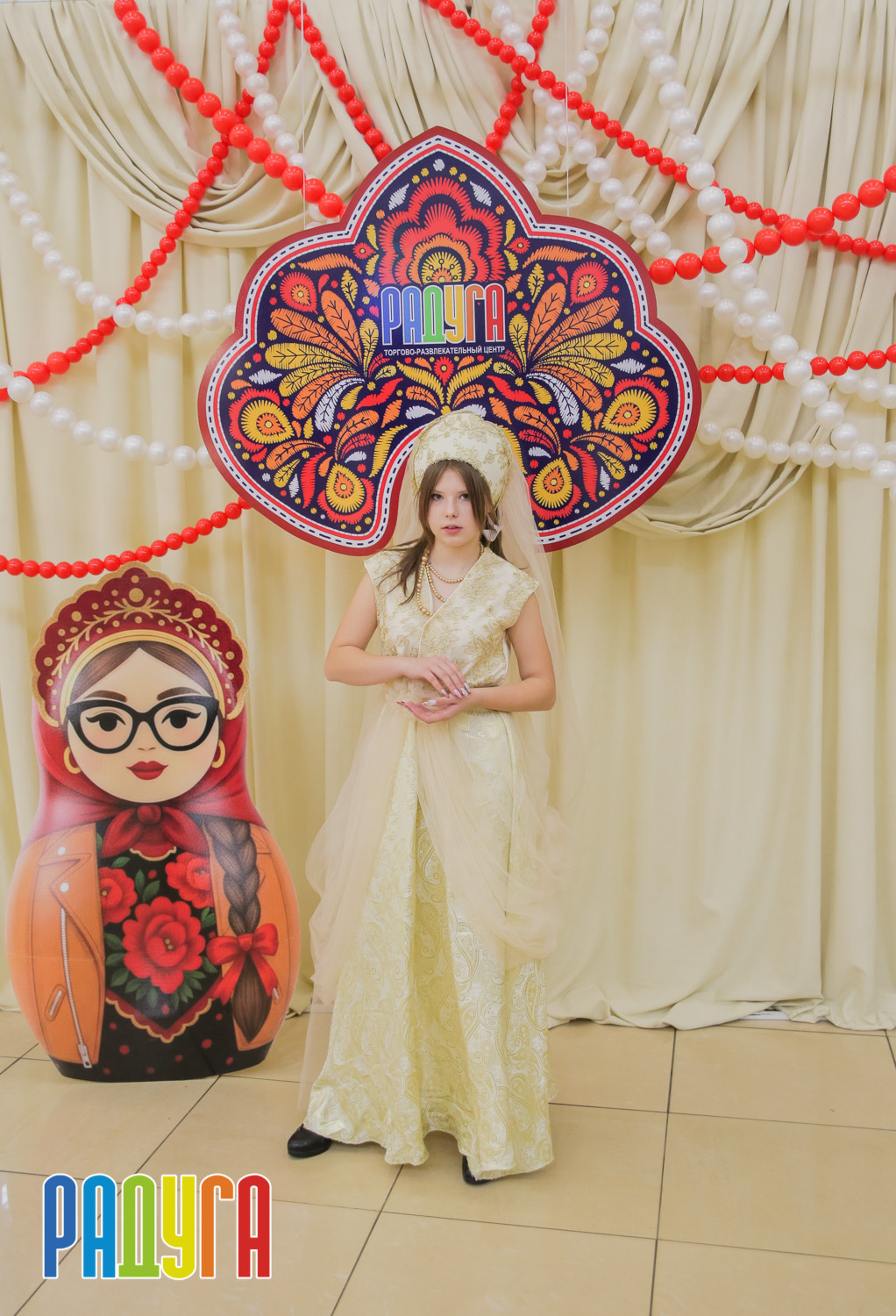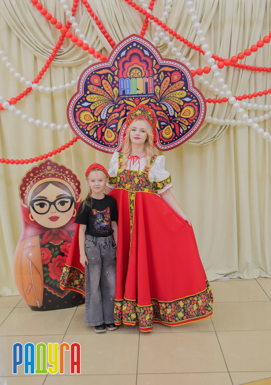 Участники флешмоба «В кокошнике по ТРЦ Радуга» блистали в своих нарядах! В нашей творческой мастерской создавались яркие народные аксессуары и расписывались матрёшки. Гостей радовала живая музыка на балалайке, а самовар с баранками согревал и создавал уютную атмосферу.
