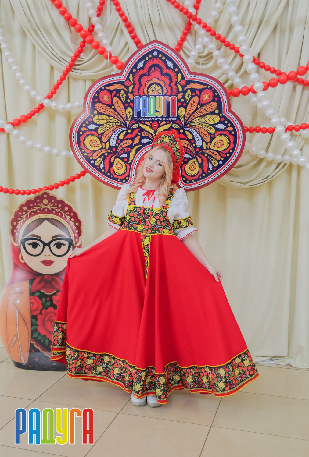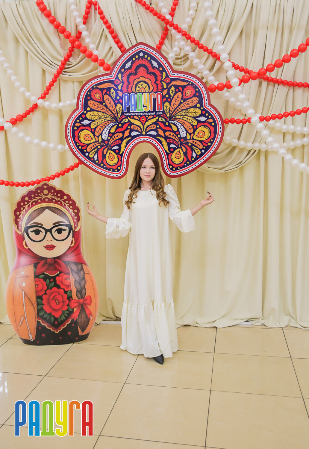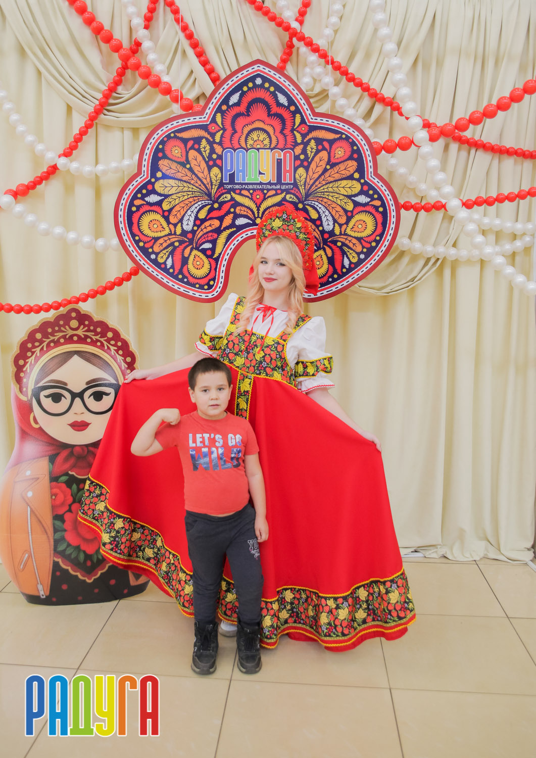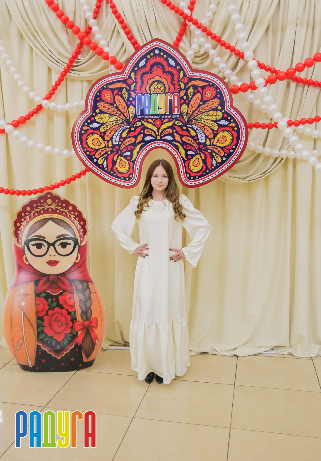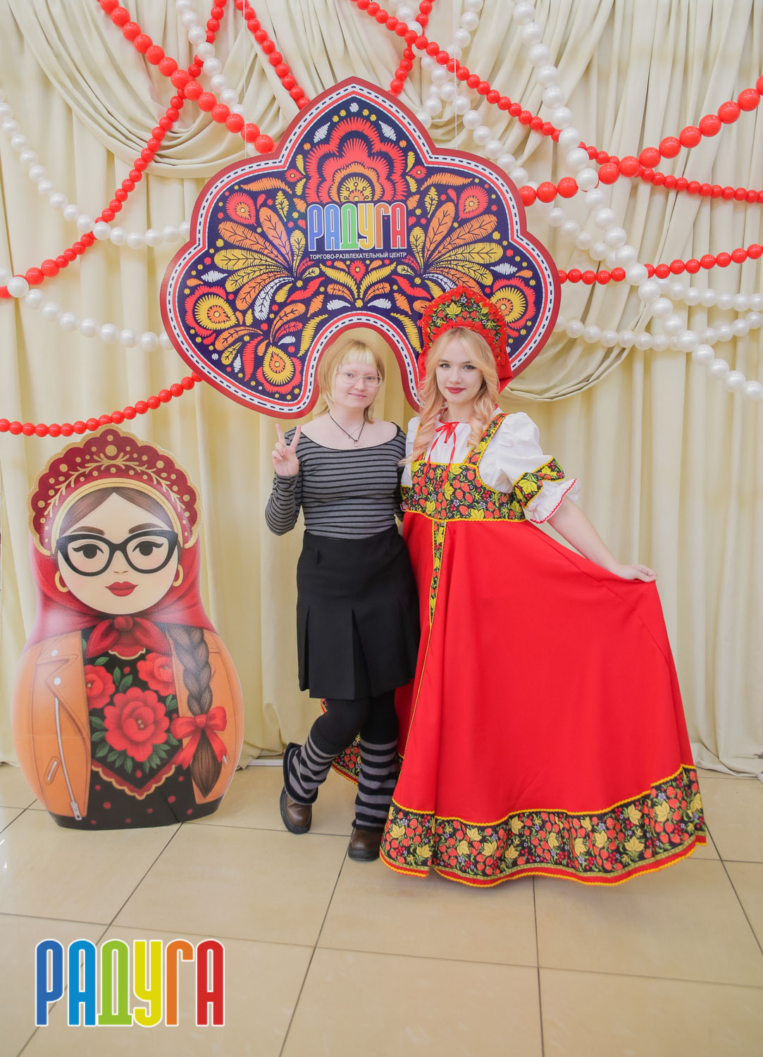 Участники флешмоба «В кокошнике по ТРЦ Радуга» блистали в своих нарядах! В нашей творческой мастерской создавались яркие народные аксессуары и расписывались матрёшки. Гостей радовала живая музыка на балалайке, а самовар с баранками согревал и создавал уютную атмосферу.