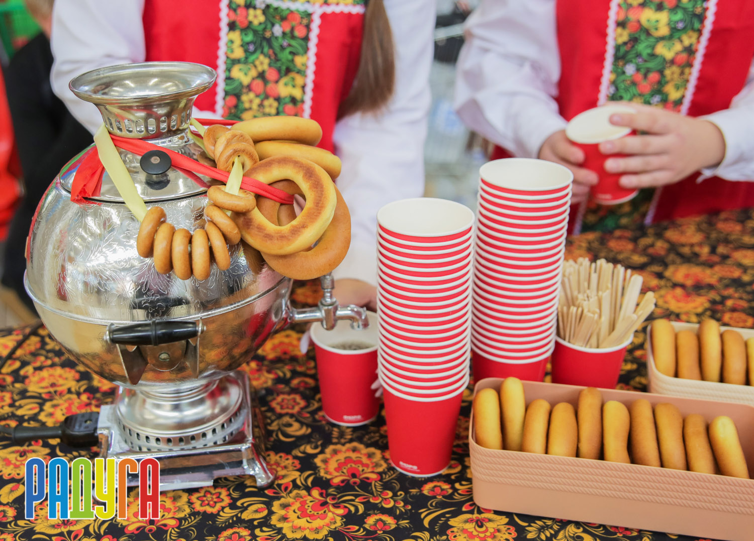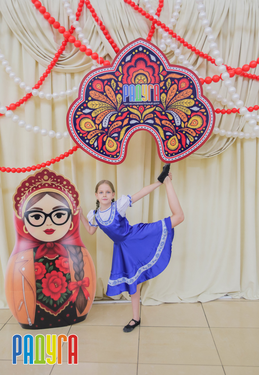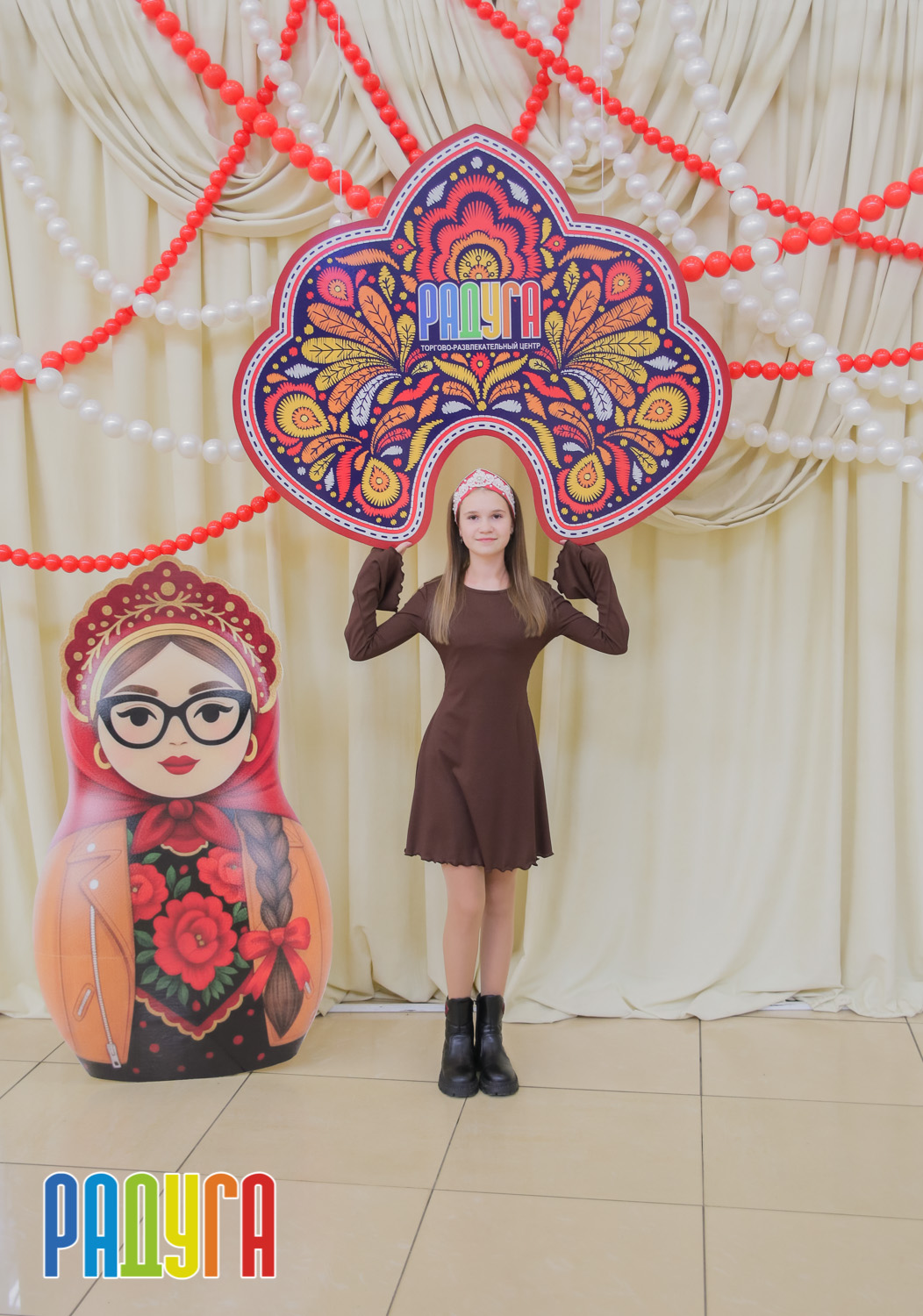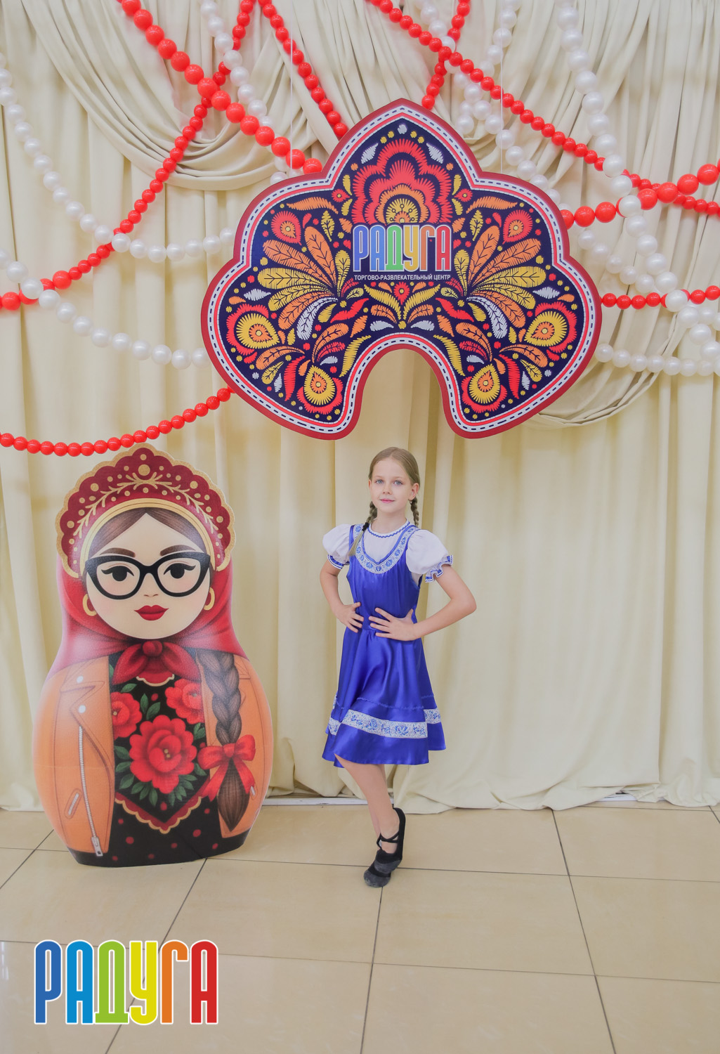 Участники флешмоба «В кокошнике по ТРЦ Радуга» блистали в своих нарядах! В нашей творческой мастерской создавались яркие народные аксессуары и расписывались матрёшки. Гостей радовала живая музыка на балалайке, а самовар с баранками согревал и создавал уютную атмосферу.