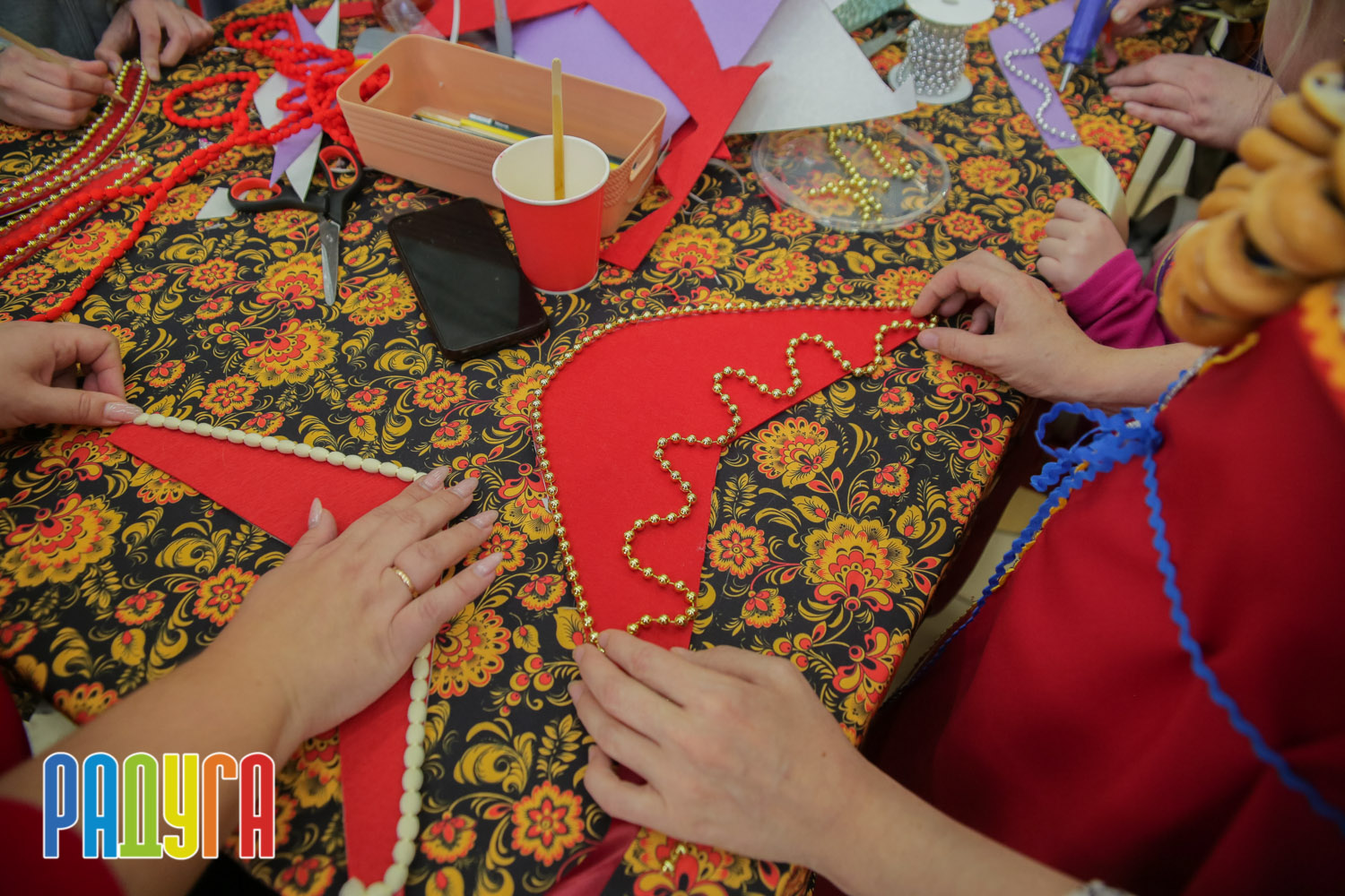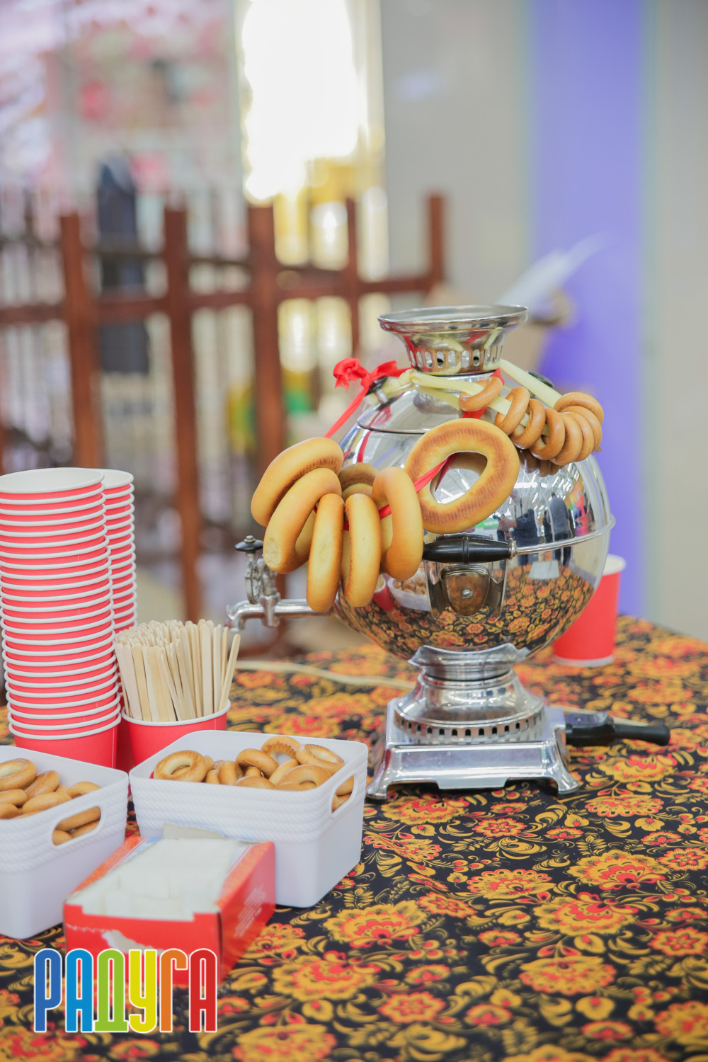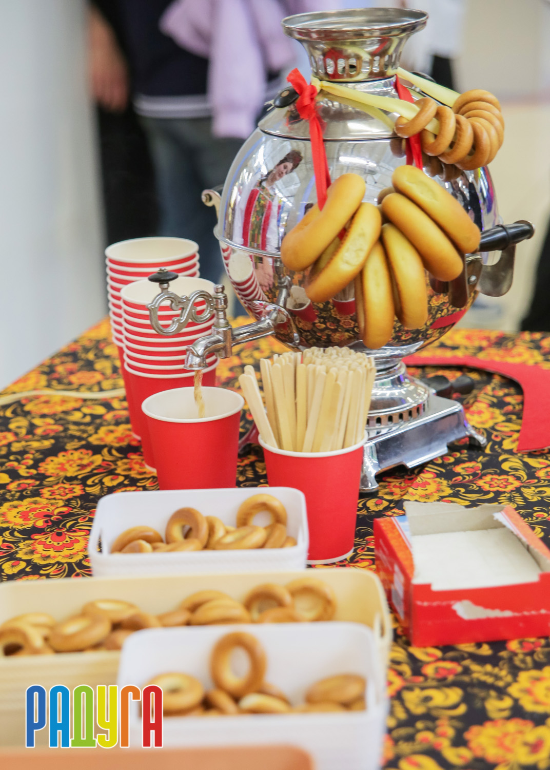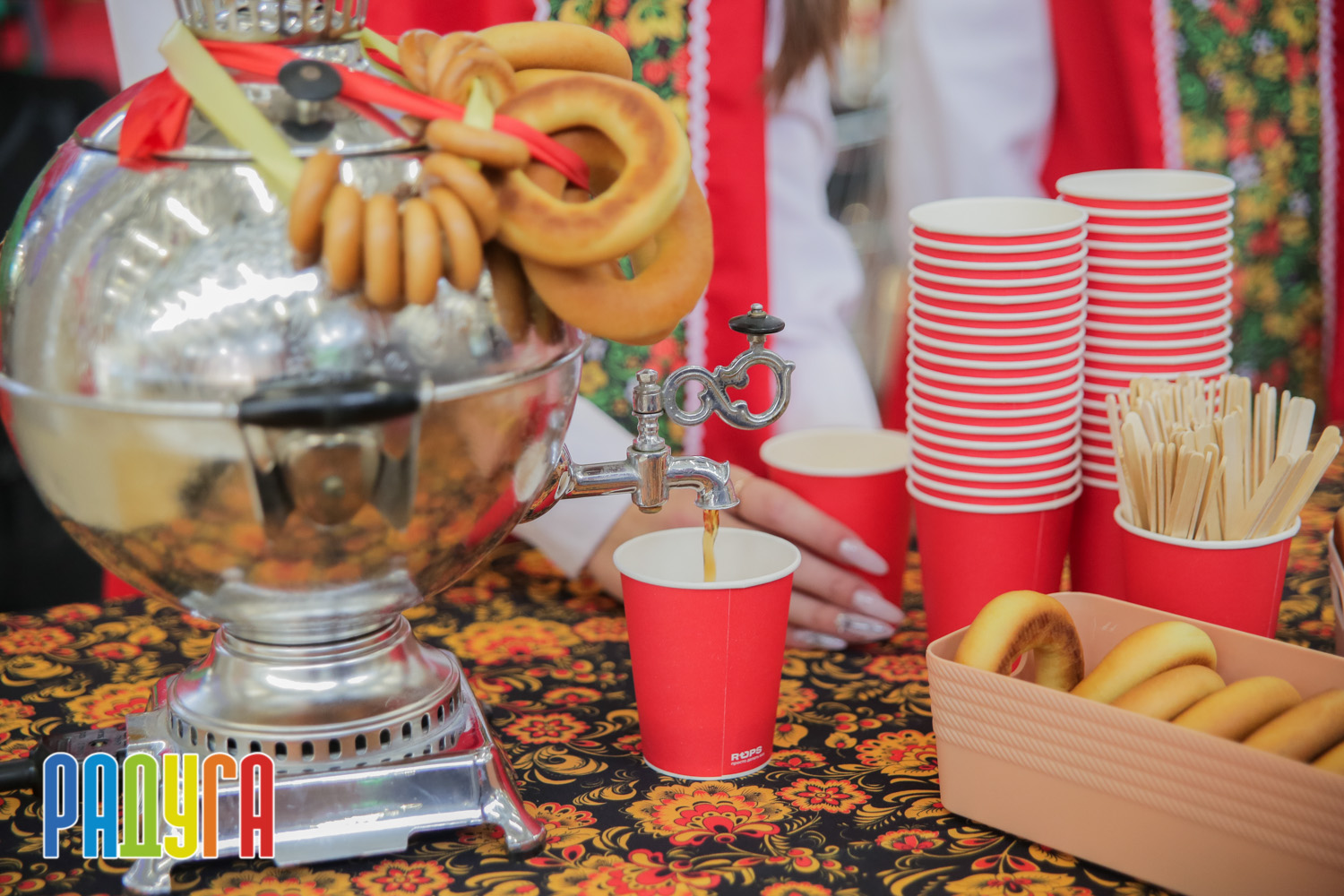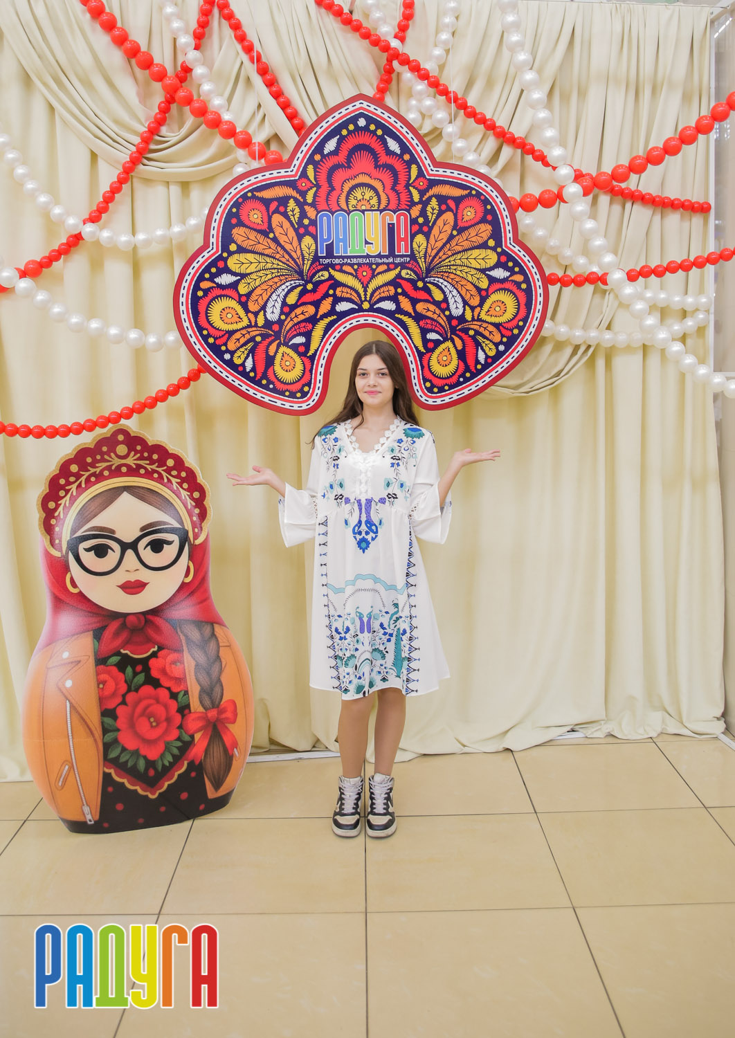 Участники флешмоба «В кокошнике по ТРЦ Радуга» блистали в своих нарядах! В нашей творческой мастерской создавались яркие народные аксессуары и расписывались матрёшки. Гостей радовала живая музыка на балалайке, а самовар с баранками согревал и создавал уютную атмосферу.
